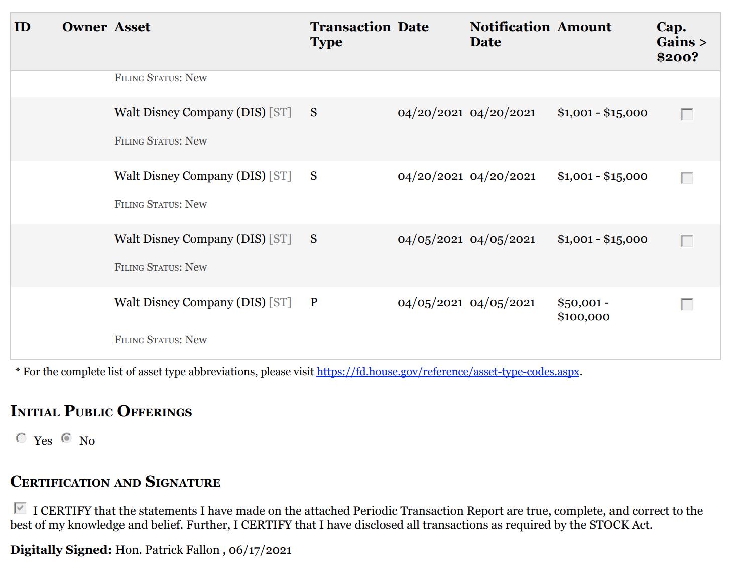 In early 2021, Rep. Pat Fallon (R-Texas) failed to report stock transactions within 45 days as the law requires. Clerk of the House of Representatives/Rep. Pat Fallon
