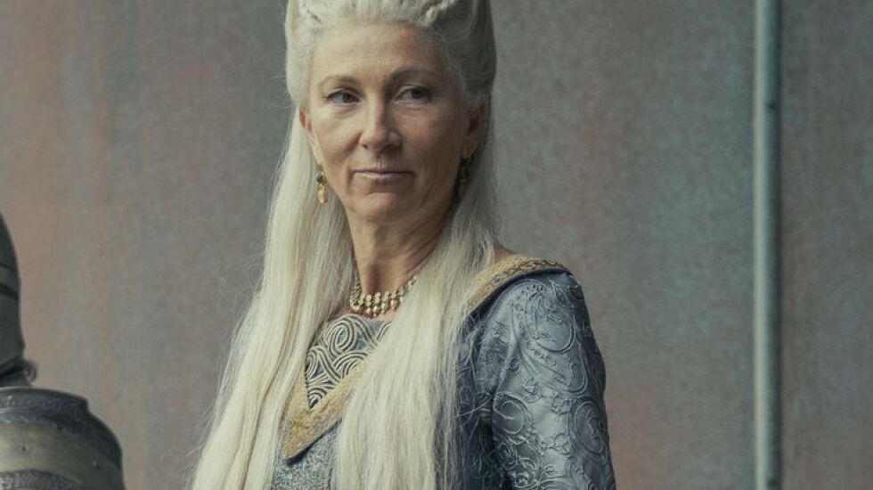 Princess Rhaenys Velaryon (Eve Best) is married to Lord Corlys and is cousin to the king. When she was passed over for the Iron Throne at the Great Council, she became known as “The Queen Who Never Was,” and you can imagine how that sits with her.