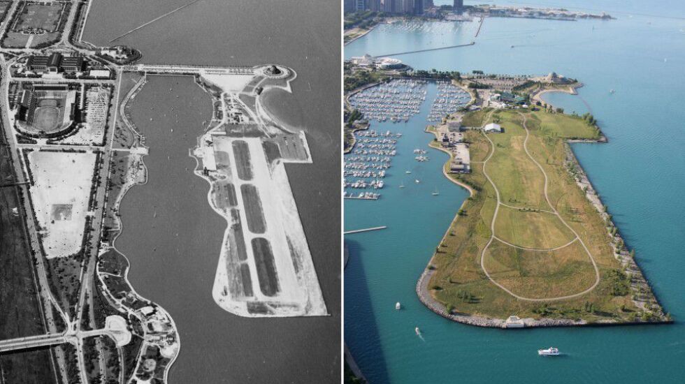 The 91-acre peninsula was home to Chicago’s second World’s Fair in 1933. In 1946, construction began to turn the land into an airport, which opened two years later.