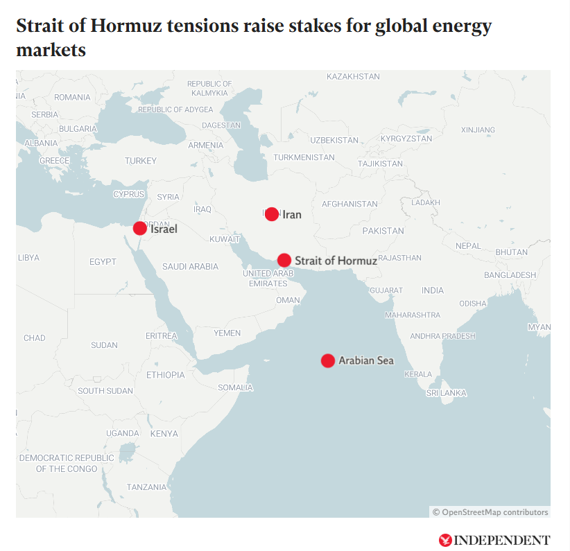 “Around a quarter of seaborne oil and a fifth of global LNG shipments pass through it, mainly from Gulf producers to Asia, and most Gulf suppliers have no alternative sea route for exports,” she tells The Independent.