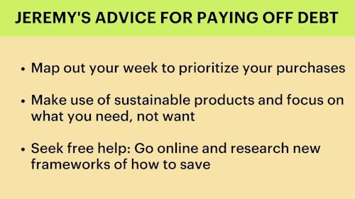 When I started a new job, I was making more money, but still not paying down my debt. My habits were staying the same, but then the pandemic hit. I realized I needed to reduce my cost of living, make a conscientious effort to cook more, stop purchasing things I truly didn't need and establish small financial goals.