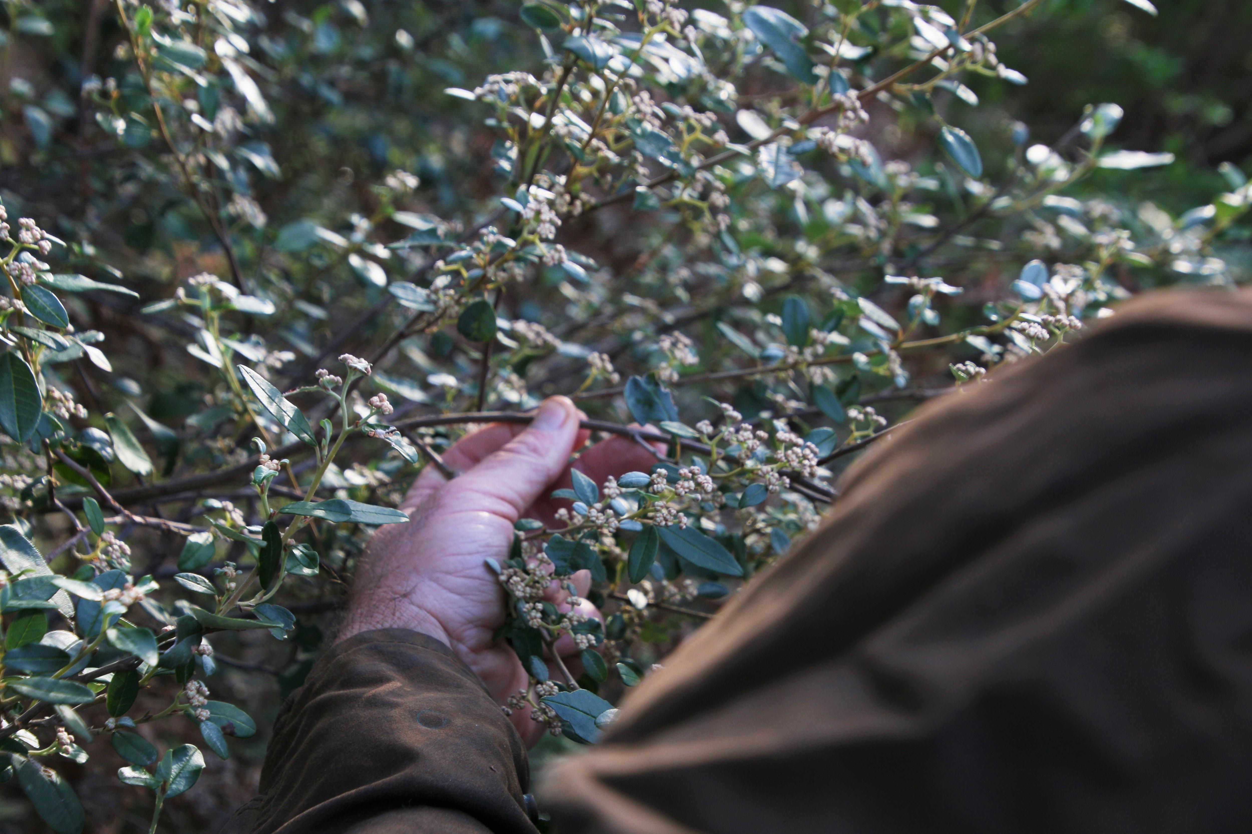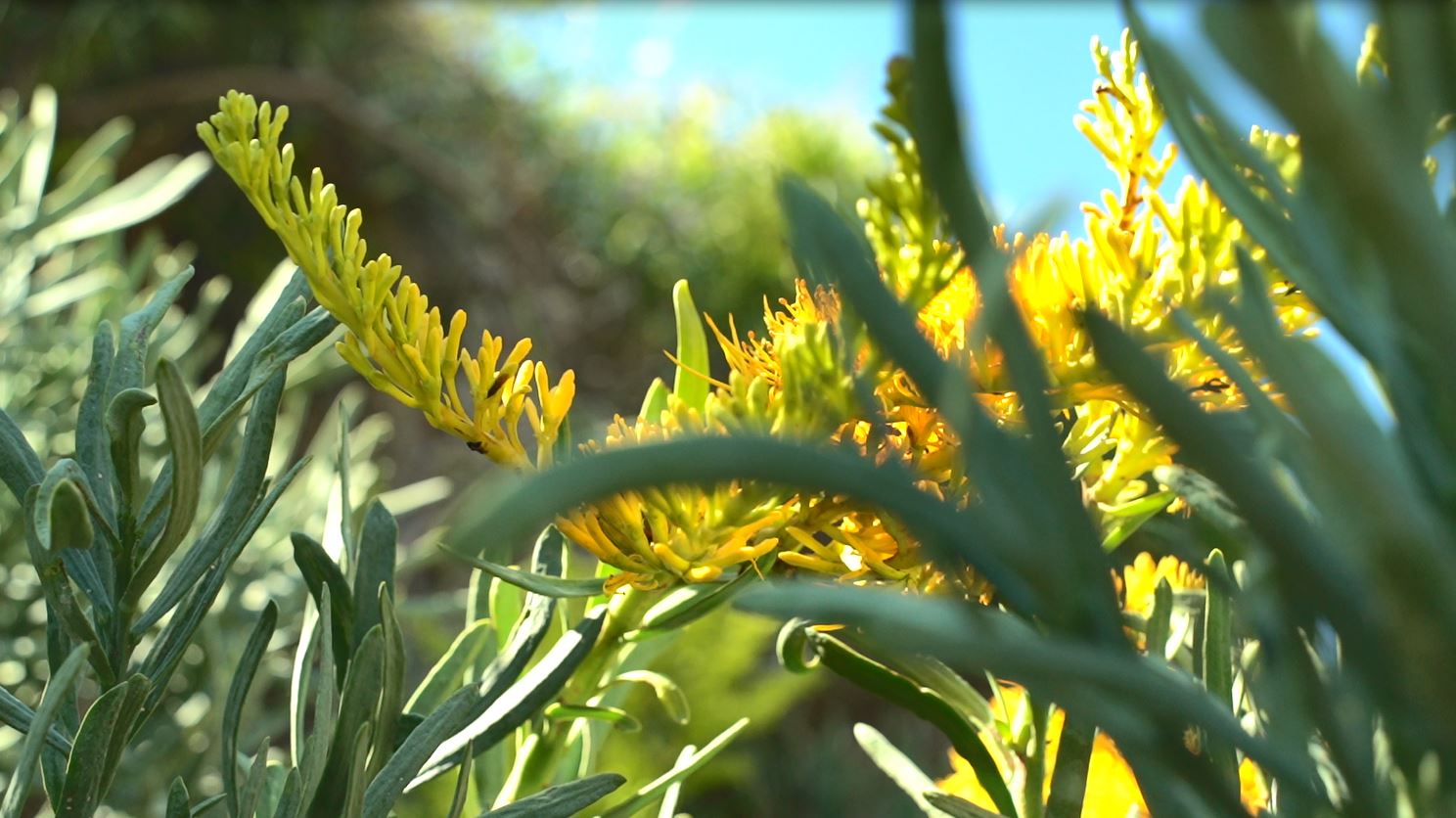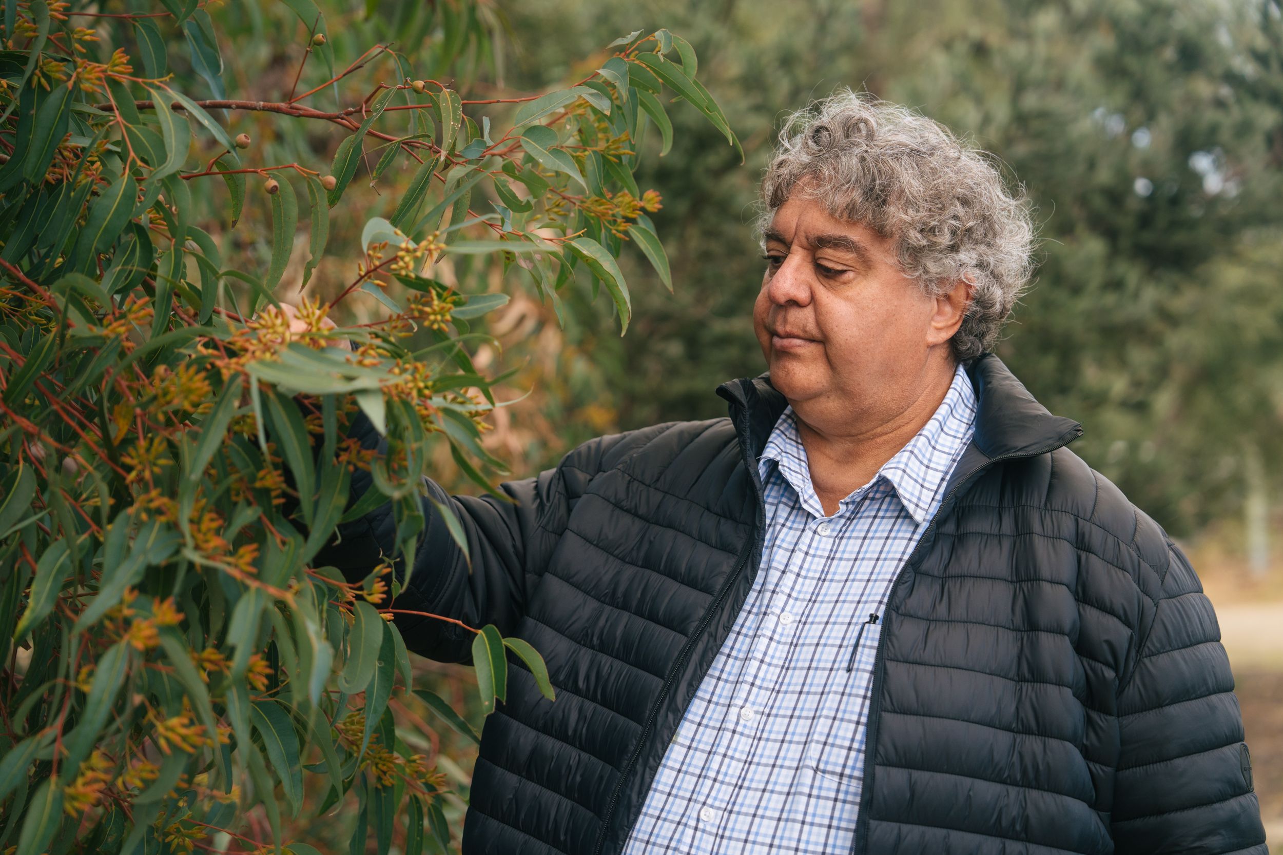 Meandering the sandy tracks of the Wandi nature reserve, Noel Nannup stops to observe the budding yellow flowers of the acacia tree.