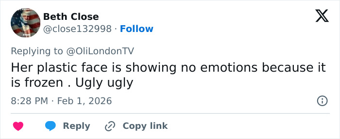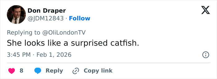 “Oh dear, too much O**mpic and plastic surgery,” added a third.