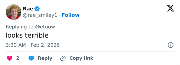 Echoing similar sentiments, others piled on with comments like, “Did she get arm lipo? Her arms look lumpy, maybe they did a 2-for-1 special when they did her b**bs.”