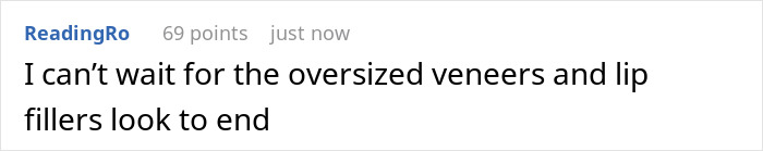 “I can’t wait for the oversized veneers and lip fillers look to end,” one social media user commented online