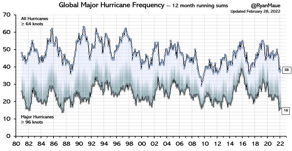 Q7. A woman asked about how urgent is it to reduce GHG? If global droughts, wildfires, super-flood storms and hurricanes haven’t shown any worsening with time over the past 40-50 years, why would they worsen with time over the next 40-50 years? Answer: This is a good question. The urgency doesn’t come from the past 40-50 years’ history of extreme weather events (Figure 2). The urgency must come from the need to get control of GHG quickly – climate scientists use their models to predict that the world has to flatten the GHG curve and start reducing GHG emissions by 2030 to escape the twilight zone calamities predicted for the earth by the year 2100. We’ll just have to wait until 2030 (or maybe 2050) to see if hurricanes get worse … or droughts, or wildfires, or super-storms.