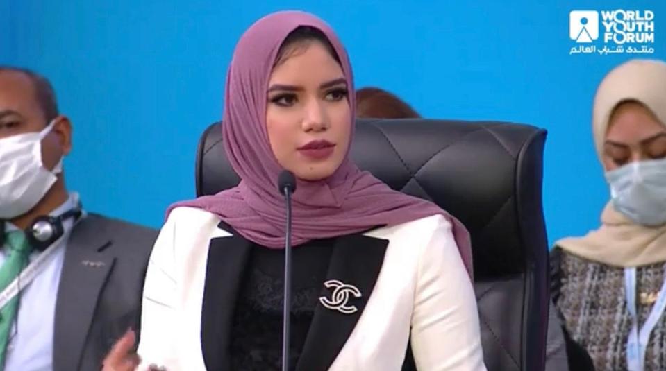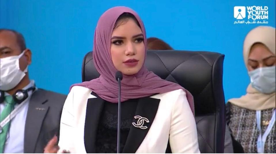 Most recently, at the closing ceremony of the World Youth Forum 2022, the crowd stood in silence as Ayman’s name was announced by a commentator, and waves of clapping ensued as she walked toward the stage where the President of the Arab Republic of Egypt, H.E. President Abdelfattah Elsisi, honored her with an award for being one of the most influential world youth. This moment, Ayman shares reminded her of the great responsibility she has to support her community and millions of youth across the world who believe in her and have been impacted positively by her voice and advocacy.