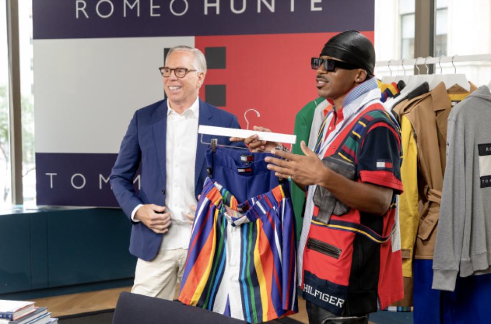 These are just a range of names that would wear the luxury streetwear label coming out of Brooklyn. Hunte has caught the eye and found a longtime mentor in Mr. Hilfiger. They have recently collaborated to create the TommyxRomeo capsule collection, which launched in 2021. This collection offered up archival TOMMY HILFIGER pieces for Hunte to utilize his signature deconstruction techniques to reconstruct and recreate the iconic Hilfiger red, white blue logo onto modern styles and silhouettes.