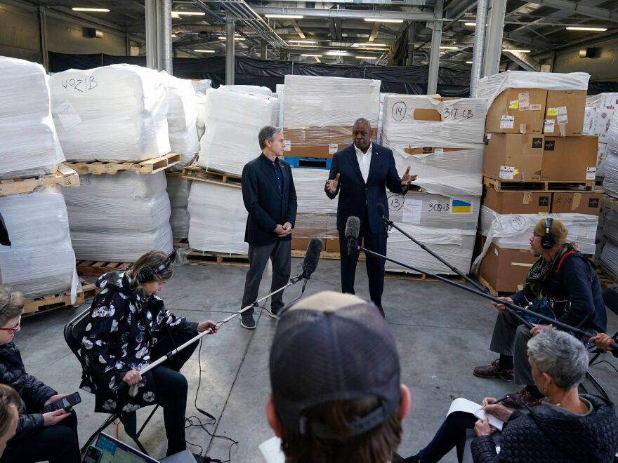 Humanitarian organizations face similar concerns. Groups are rushing to help find housing for refugees, send food to embattled regions and rush medical aid to those under attack. Some Republicans have raised concerns that the groups administering that support haven't been able to keep up with the supplies they are being sent.