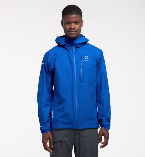 When I’m trying to keep weight down on a trip, I always take my Haglofs L.I.M Jacket, which weighs only seven ounces and stuffs into my pocket. Although the material is really thin, it’s made from Gore-Tex and withstands heavy showers with minimal leaks. The pocket placement is extremely practical for thru-hiking with a pack. One is a vertical pocket at chest height and the other is a diagonal pocket just above the hip, meaning that you can still easily access your phone even when wearing a hiking backpack with hip and chest straps. The reinforced peak on the hood effectively keeps water out of your eyes.