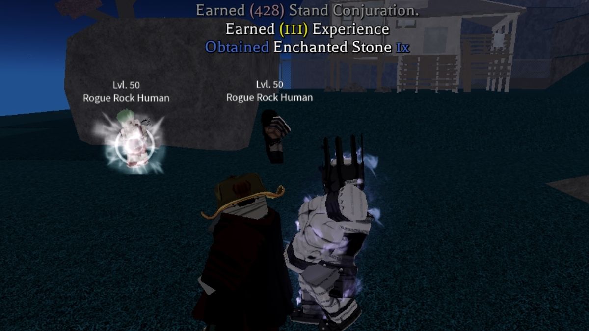Rogue Rock Humans are considered dangerous enemies for early-game players. They have higher health and damage compared to most mobs in nearby zones, so going in under-leveled will make farming difficult. Make sure you have the best Bizarre Lineage Stand as well as that you have the highest Conjuring on it.