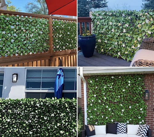 Create more backyard privacy with this gorgeous faux ivy fence. It measures 47 inches long and 11.8 inches high and comes in a range of different styles. Whether you opt for sunflowers, or apple leaves or stick with simple greenery, this expandable fence is a great way to block the sun and protect your privacy while simultaneously adding extra decor to your backyard.