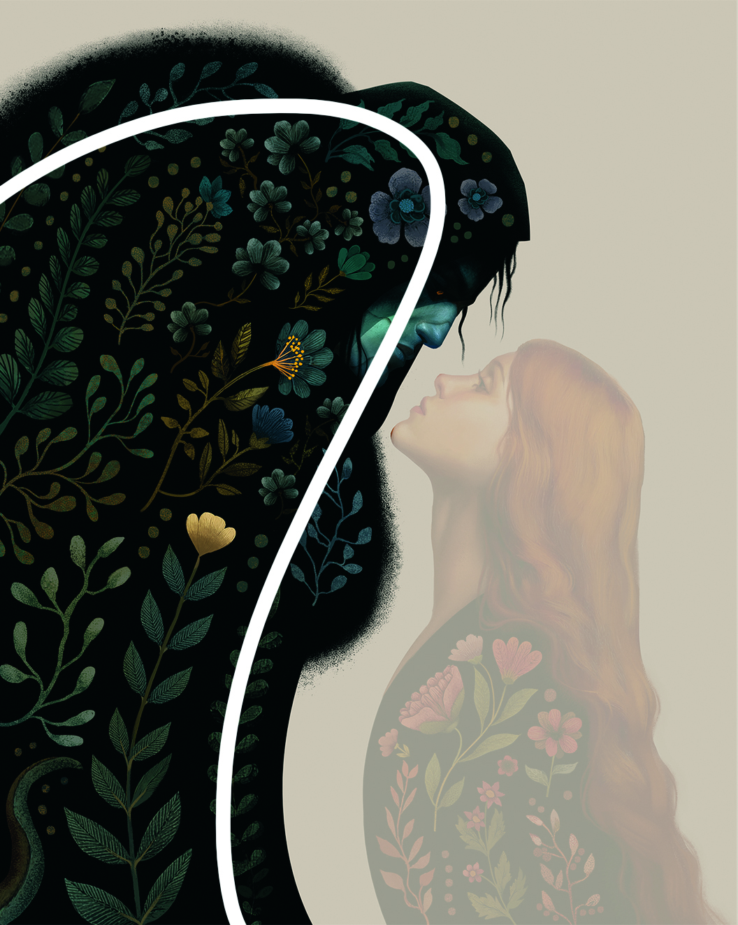 Our culture’s mythology can be liminal and this is also how I approach most of my art. I want it to have clear contrast, in these cases Maiden/ Monster, bloom/decay, above/below, etc.