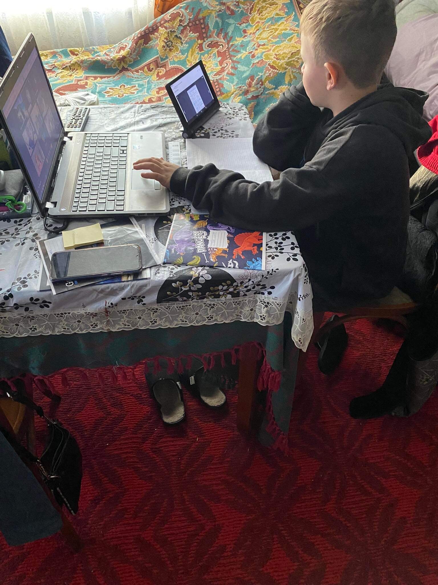 Her two sons, aged eight and 10, attend classes online.