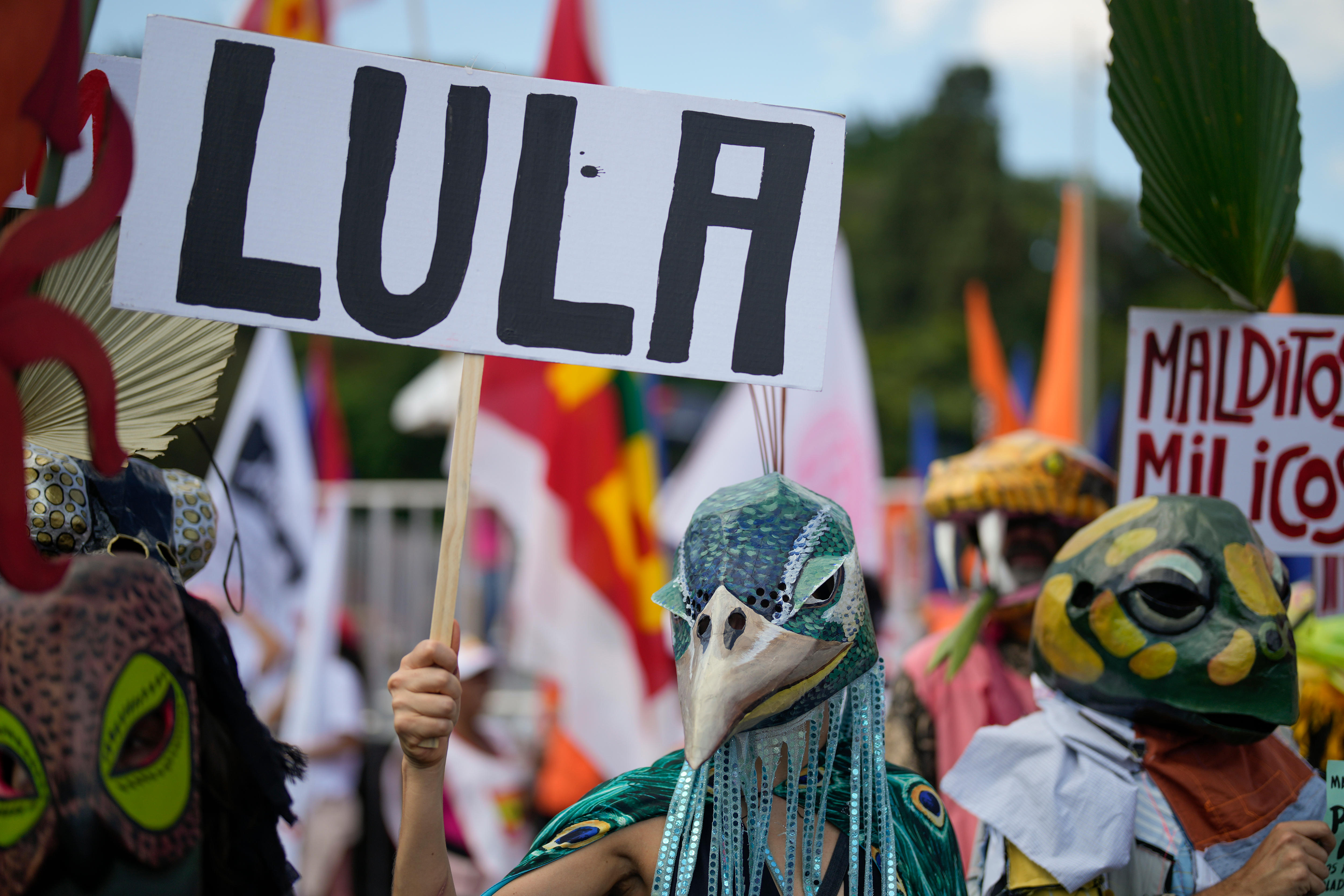 Activists waved flags and held banners celebrating unions and socialists' parties, dancing to music and applauding the speeches of leftist leaders exhorting supporters to vote in the upcoming elections against conservative President Jair Bolsonaro.