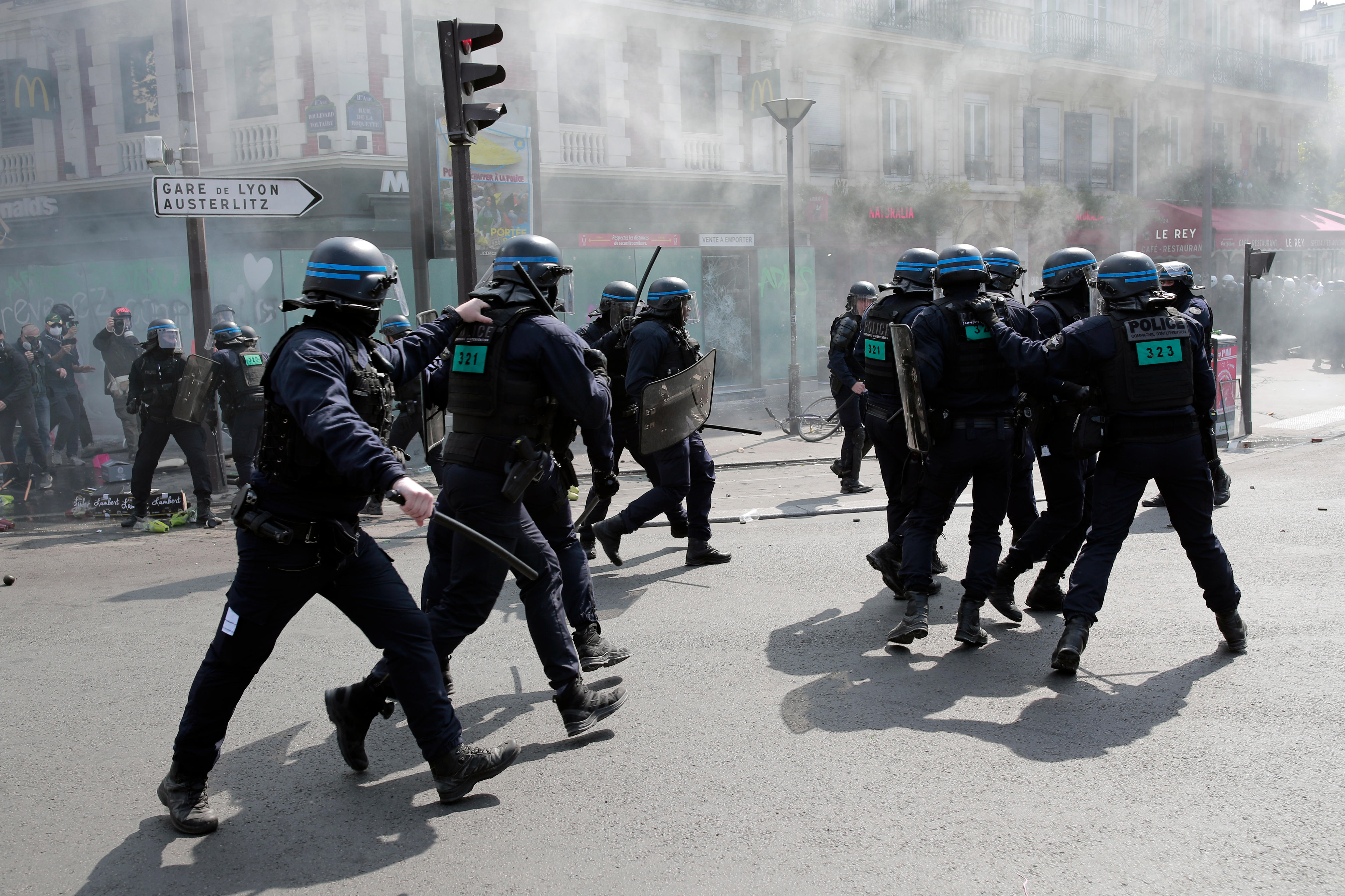 In France, police fired tear gas to push back black-clad anarchists who ransacked businesses in Paris, where May Day protests were largely focused against the policies of newly re-elected President Emmanuel Macron.