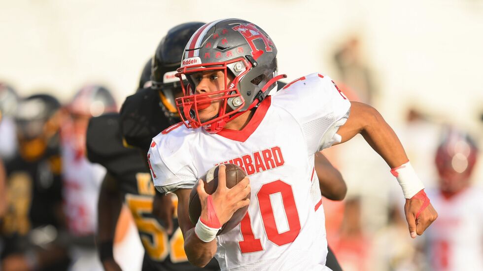 Hubbard quarterback Ares Boelter was dominant. The senior had 20 carries for 118 yards and two touchdowns. On defense, he added two interceptions, one of which he returned 25 yards for a TD.