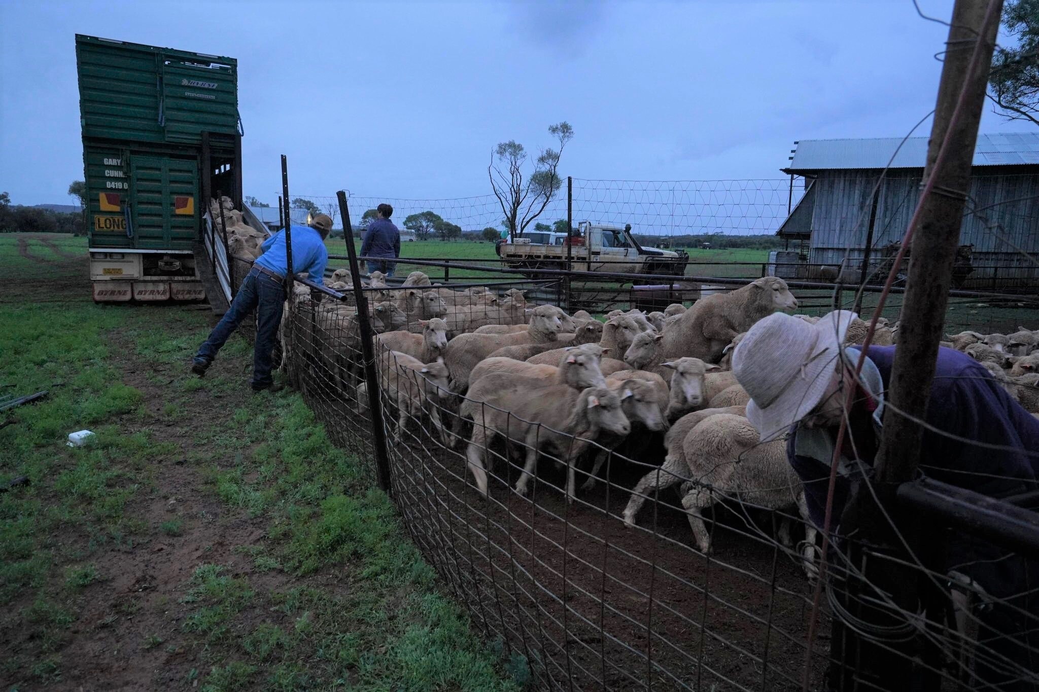It's sunrise on Wendy Sheehan's Quilpie property and her boots are soaked with mud as she loads hundreds of sheep bound for NSW in the drizzling rain.
