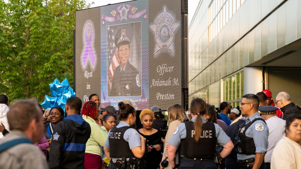 “I always tell them, ‘Look, you have a desire to do this job, go out and be the best that you can be,’” Ben said to Preston’s family. “Aréanah was a beautiful soul, she took this job seriously. She was out there, making sure she was making a difference for the city of Chicago, the citizens of Chicago. So you can hold your head up high. She’s looking down on us, she’s smiling on us. Thank you for giving her to us for this little while.”