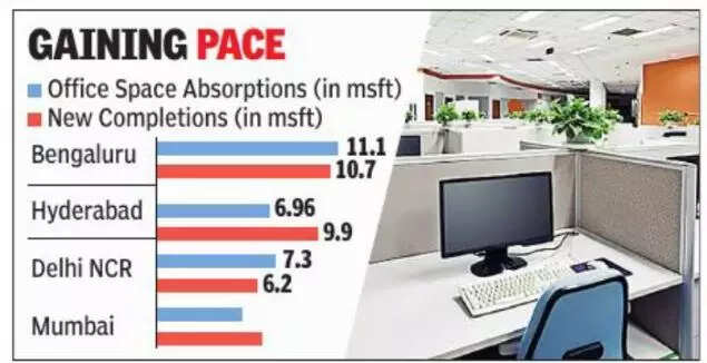 HYDERABAD: Hyderabad along with Bengaluru led the way among the top seven cities when it comes to both office space absorption and new office completions in 2021, as per realty consultancy Vestian.