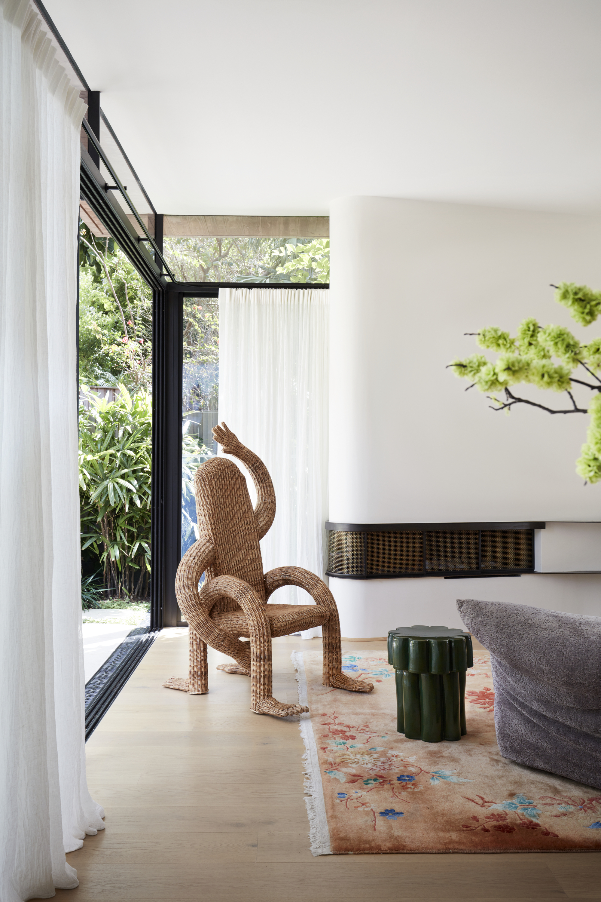 "It challenges the idea of a simple seat by becoming a living sculpture that interacts with the human body," explains Uchronia's Julian Sebban. "Woven from Colombian wicker, it evokes both traditional craftsmanship and an organic, almost anthropomorphic form inspired by the body, as if the chair were welcoming and embracing you."
