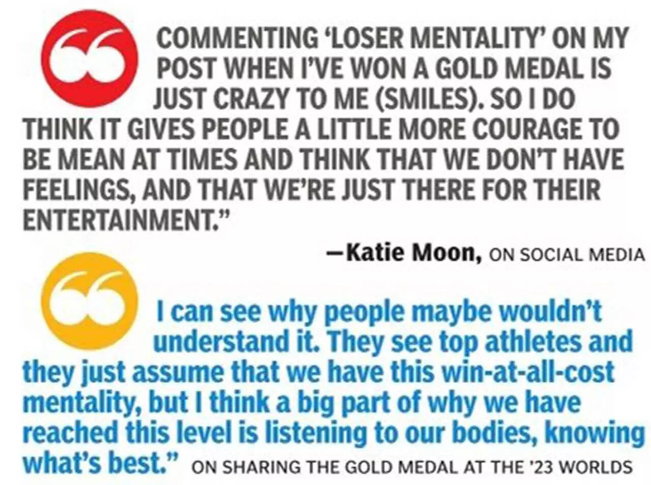 Be it sharing her gold medal in Budapest with Aussie Nina Kennedy and being criticized for it, the perils and advantages of social media, athletes using their platform to voice their protest, Moon touched upon a variety of subjects during a 30-minute interaction.