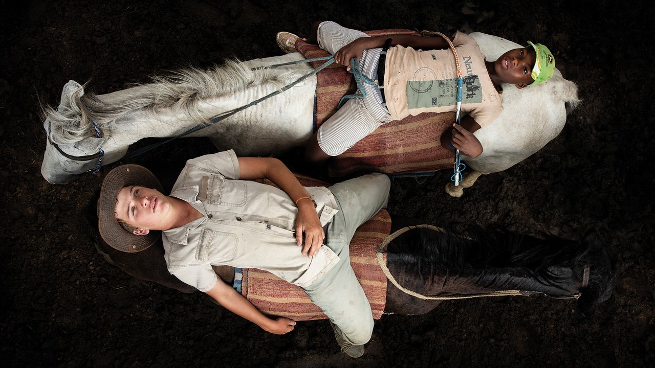 Armed with a DSLR – one of the first true professional hybrid cameras – and a standard zoom lens, he captured two men resting on horseback in South Africa, from a striking overhead viewpoint...
