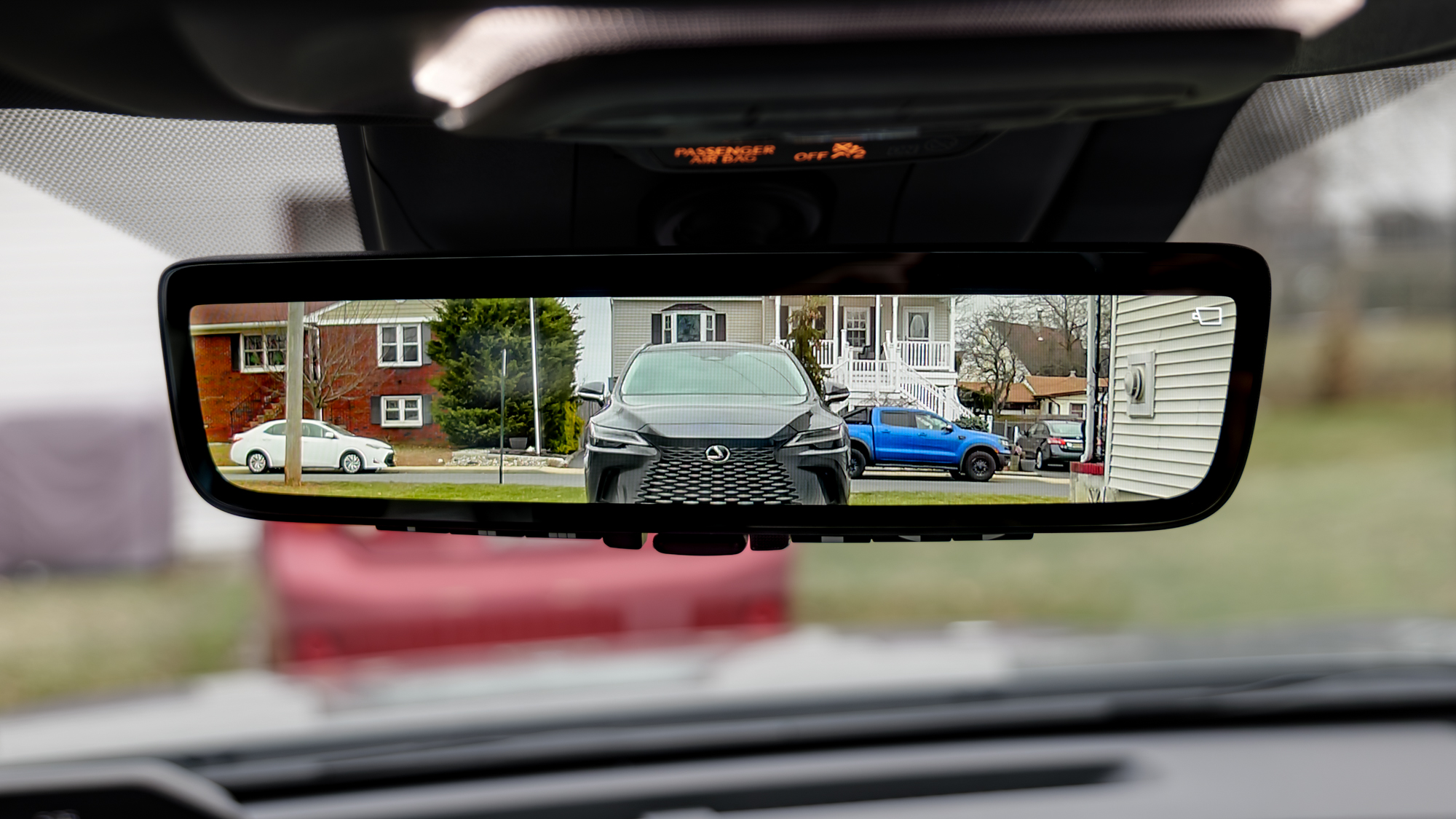 With a quick flip of the switch on the underside of the mirror, I can instantly activate the camera feed to get a wide-angle, unobstructed view of what's behind the vehicle. This feature also comes in handy on the highway, especially at night, because it eliminates the blinding glare typically caused by the headlights of following cars.