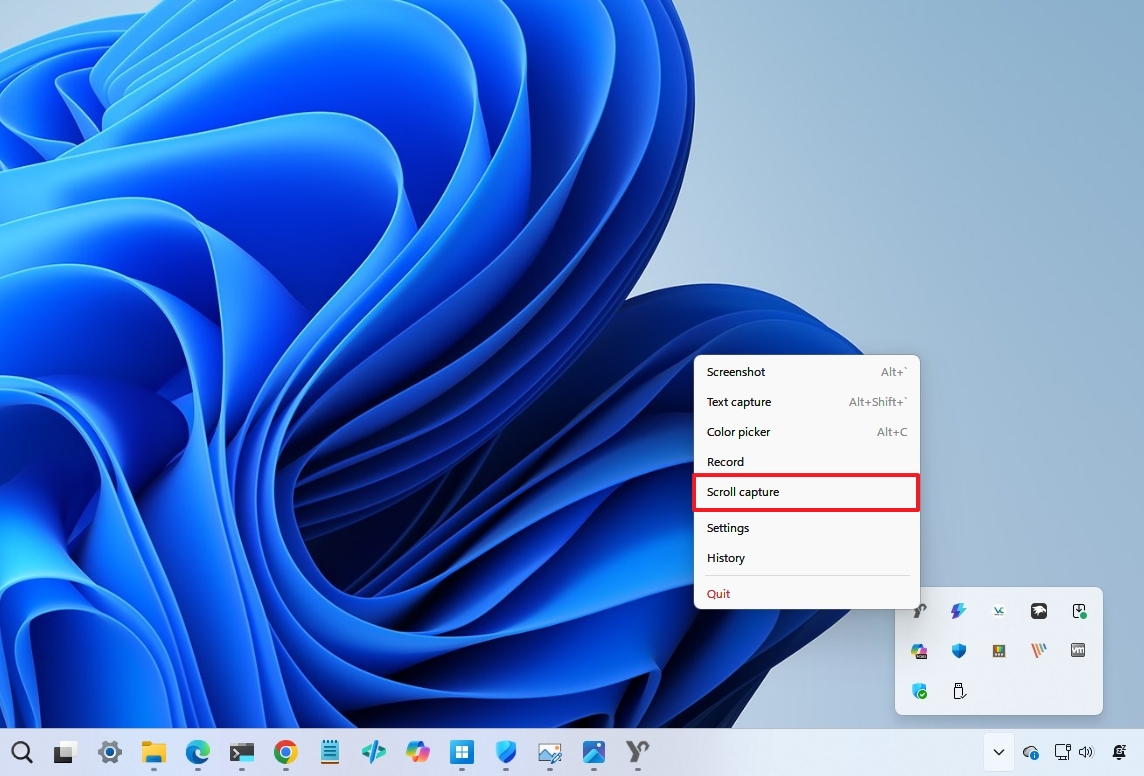 If you want to use this feature, right-click the Yoink button in the System Tray, select "Scroll capture," choose the region you want to capture, and start scrolling. The app will automatically capture the frames and stitch them together into a single screenshot.