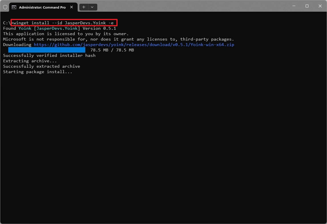 If you want to install this application using a command, from the Start menu, search and open the Windows Terminal as an administrator, and run this command: winget install --id JasperDevs.Yoink -e