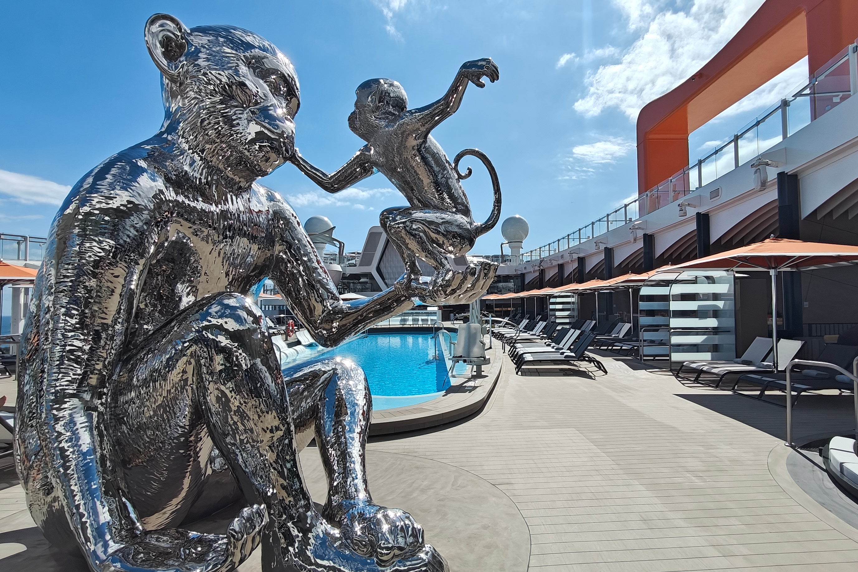 Passengers voted for a giant stainless steel monkey sculpture, which dominates the pool deck and makes a perfect selfie spot, plus suggested drink recommendations.