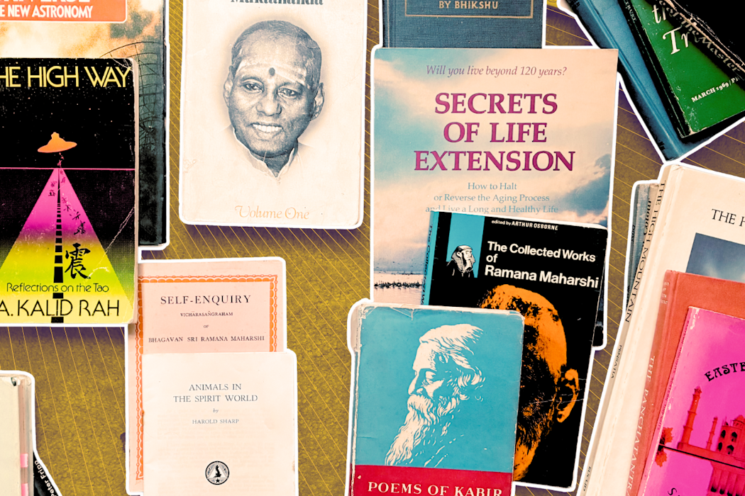 In a small room scattered across stained carpet lay remnants of a forgotten library: dust-riddled books on yoga and meditation, histories of medieval saints and mystics, cosmic education, life extension and biographies written via psychography (spirit writing).