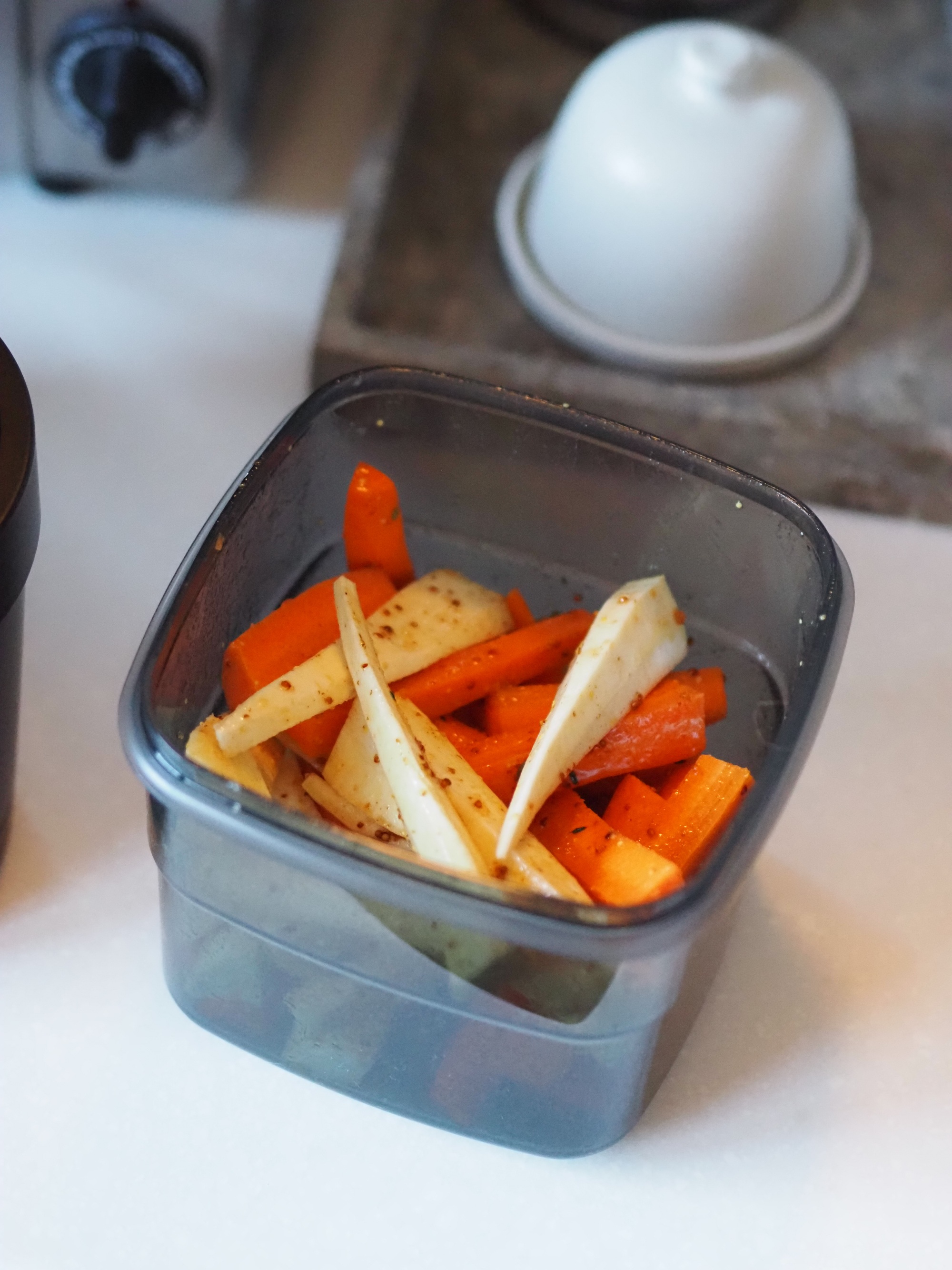 Let's start with marinating. If you're using fresh ingredients, but only want to start cooking as you're ready to eat, not hours before, I can vouch that it did make a big difference to the marination process. I found that it added more flavor to my meals, specifically when used on meat, or for softer, more porous vegetables. It definitely improved the flavor of my carrots and parsnips, pictured, on Christmas Day, but not quite as dramatically as in other applications. On reflection, I think I should have run the marinating cycle at least one more time — something you're encouraged to do where you think it might be necessary.