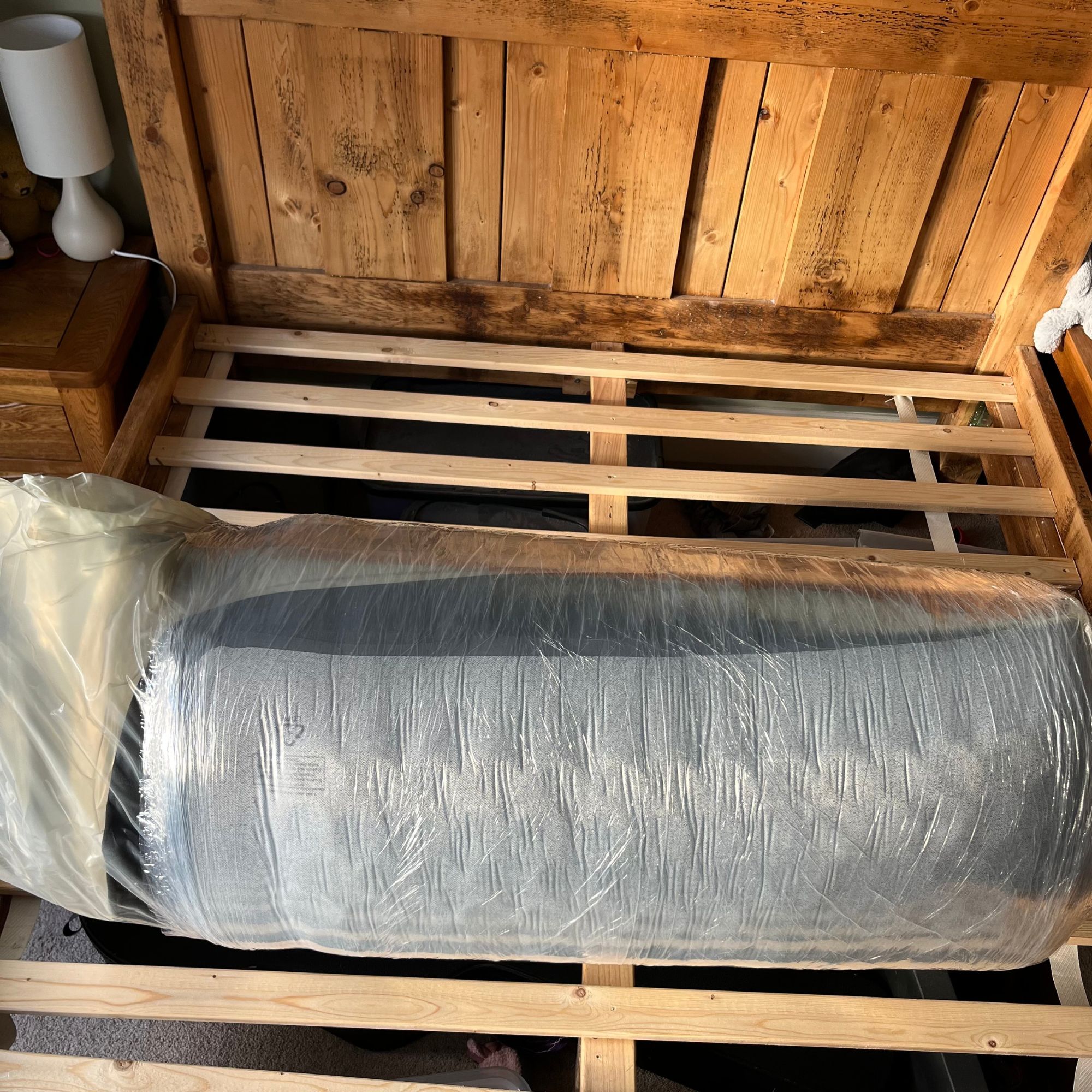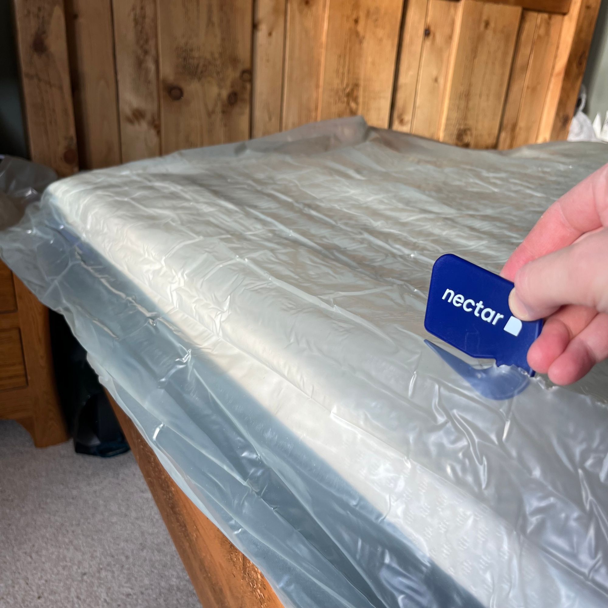 Once I managed to drag the mattress out of its box, I found it was rolled tightly and wrapped in plastic. A cutter was provided to cut through the plastic safely, which was useful.