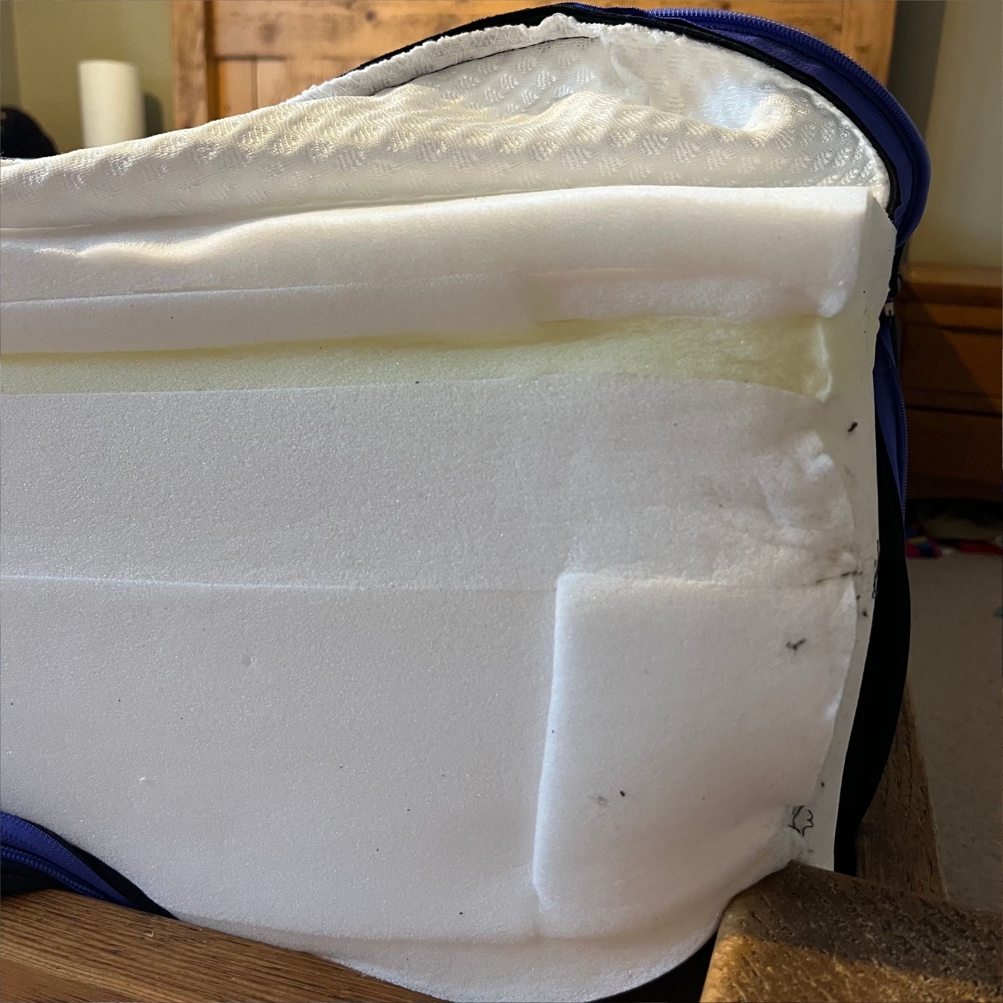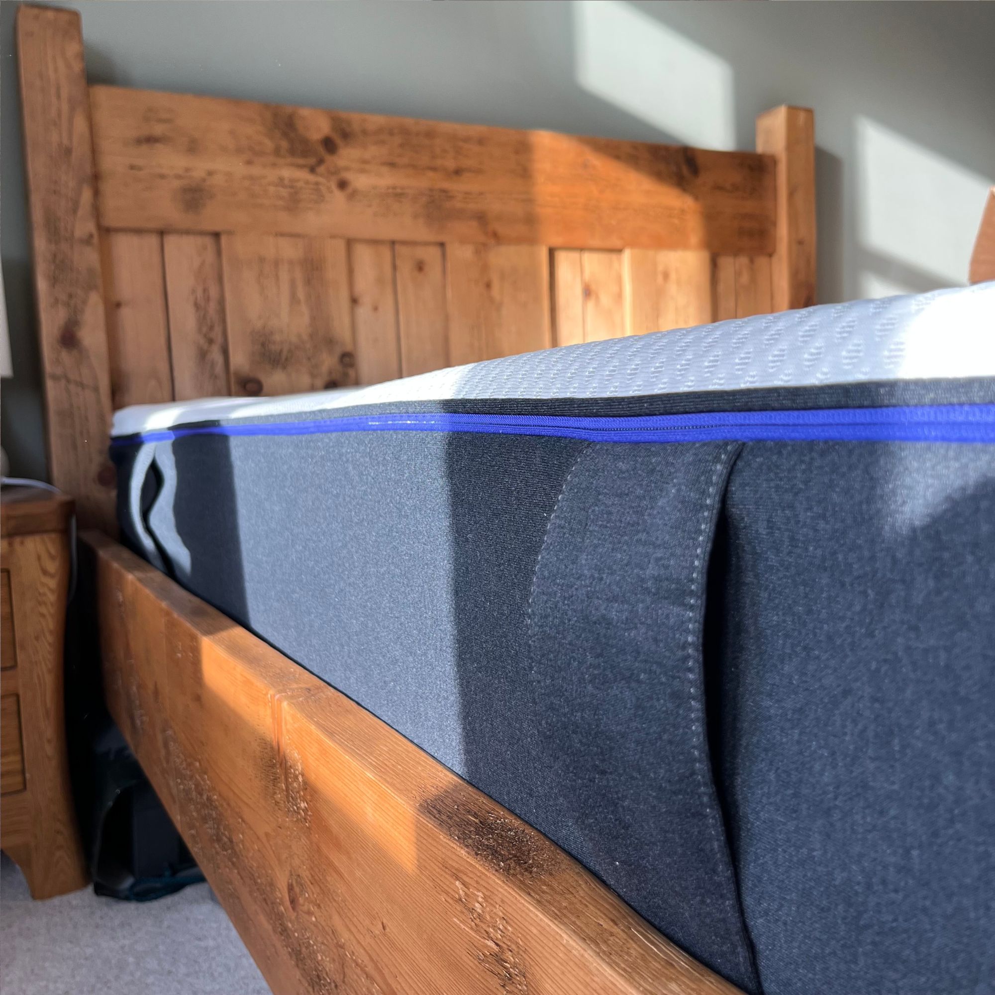 However, I was a little surprised by how much the side collapsed when I sat on it, especially considering that the mattress has a 28cm depth overall. I only weigh 13 stone, and the side compressed by a good amount when I sat on the edge.