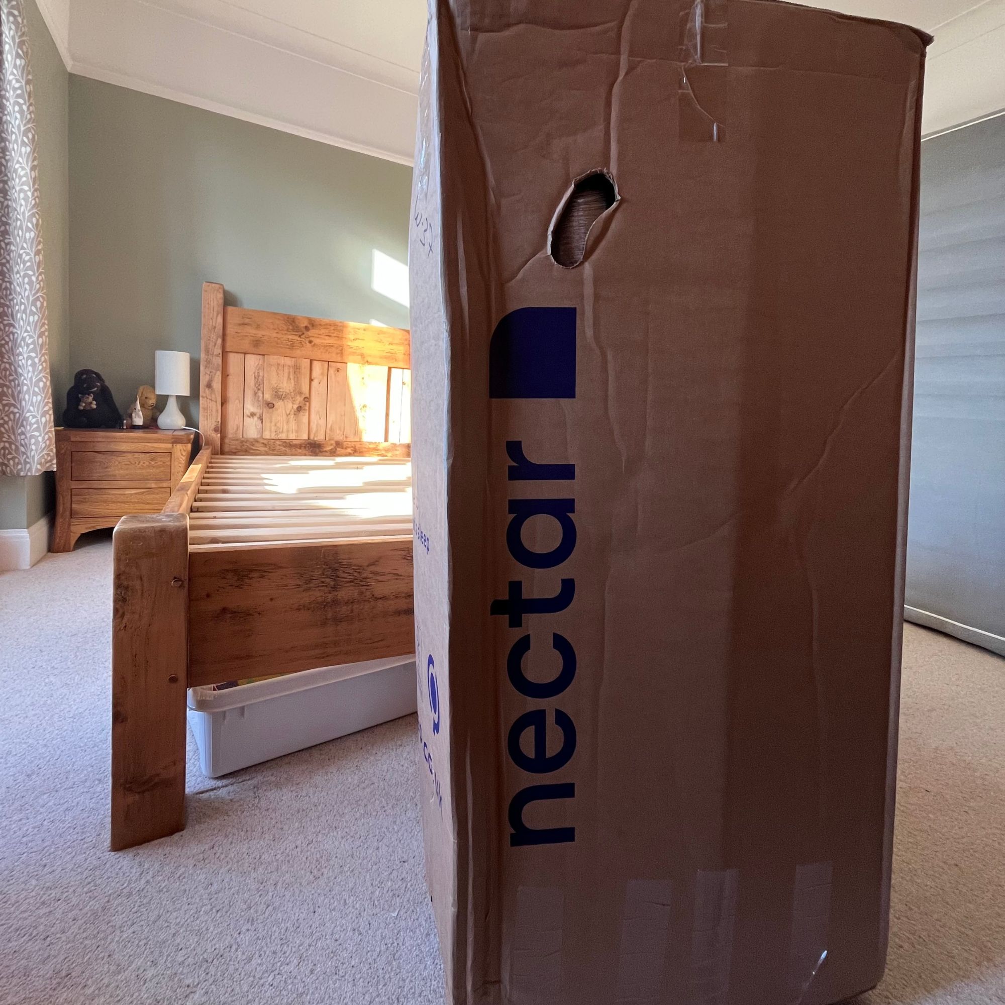 Fortunately, the Nectar Premier Hybrid Mattress is a mattress in a box, so I managed to haul the box inside by myself. But note that it does weigh a fair bit (it's 5 stone for a double), so you may prefer to wait until you have an extra pair of hands at to help you maneuver your new mattress into the bedroom.
