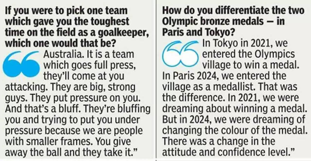 When I started, the first target was getting into a stadium and achieving 60 marks. Later, my teacher said, 'Sree, if you win a medal at the Nationals, you'll get 90 marks. Then the same Sir told me, 'If you play internationally, you get 120 marks.' So, I started working hard to achieve that goal. Then, somebody told me, 'If you keep playing hockey like this, you'll get a good job'. I was like 'Why do I need to study when I can play hockey and get a job'? When I turned 18, I got a banking job. I was told that if I perform well at the international level, I'll get promotions which was a good incentive. Over the years, I performed well, winning medals at the 2014 CWG and Asian Games. Then you started thinking about playing in the Olympics and securing a medal there. That's when you become a real sportsperson and take the game seriously. Now, I have changed my job and joined the state govt's general education department. I am more than happy because even after my career is over, I can be involved with sports.