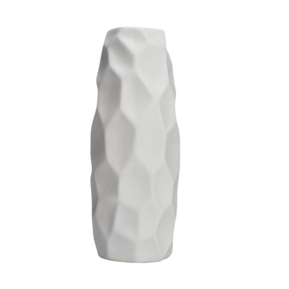 A multi-faceted vase like Amanda Seyfried's adds interest to an otherwise unremarkable decor piece. Even though this one is plain white, the different angles reflect the light creating a beautiful variation in tone.
