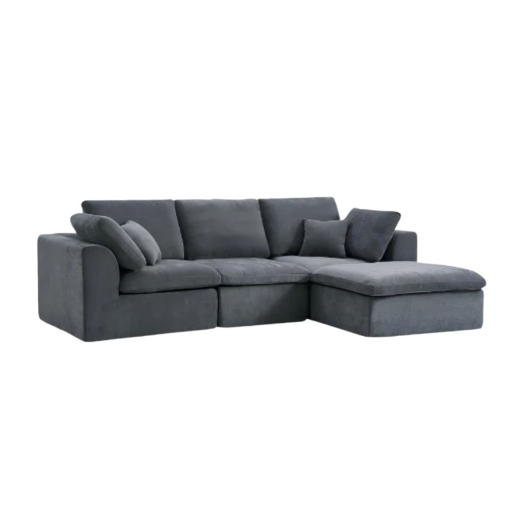 Channel the luxe textures from Amanda Seyfried's living room with a velvet sofa or armchair. This L-shaped piece says 'comfort' without forgoing style and the velvet will catch the light for a multi-tonal effect.