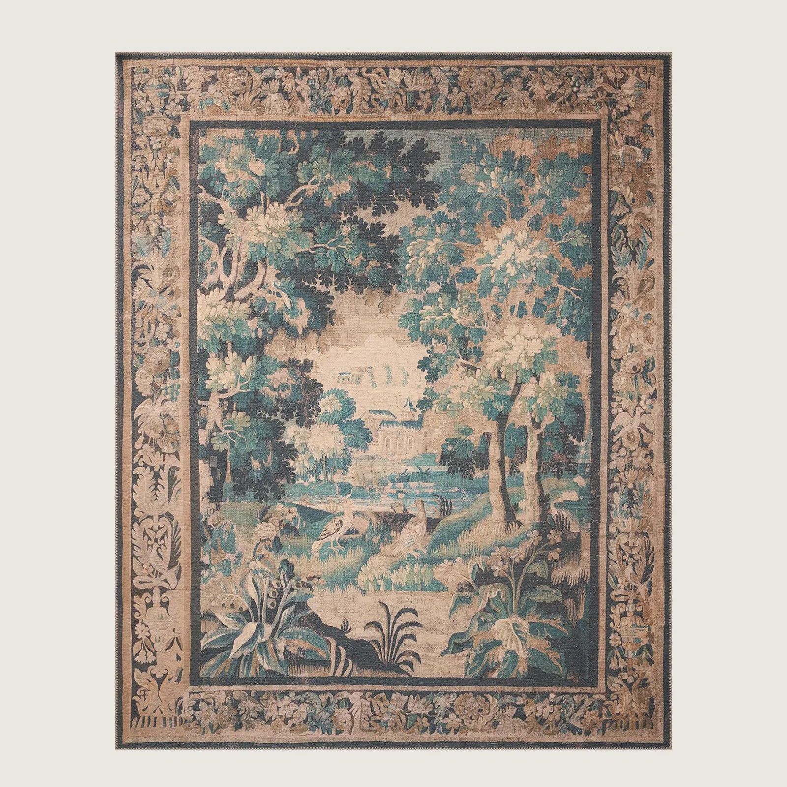 Bringing in the hints of brown and blue from Amanda Seyfried's living room rug, this design by Lone Fox x Joon Loloi has such a beautiful print of a tree-framed landscape – it's like a work of art for your floor.