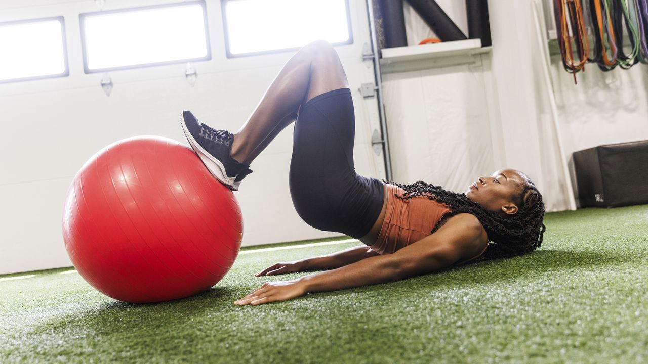 Modify the movement as required—even holding a static glute bridge will effectively build strength as your hamstrings fight to resist the instability of the gym ball.