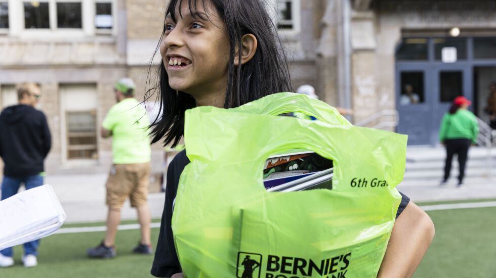 Grade schooler Isaris Ramos smiled as she sorted through her bag of eight new books.
