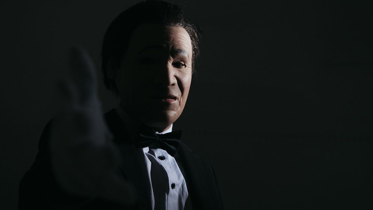 The person staring down his phone screen at us, image wobbly as he holds it in his hand, is not the President that you see onstage. Rather than wearing a Point Break-style suit and a latex mask that seems to be some kind of amalgam of Ronald Reagan, Richard Nixon and Donald Trump, he’s currently lounging on his hotel bed in a hoodie and a baseball cap, which he occasionally removes to ruffle his thick hair. This means his identity is known to us, but having pledged our allegiance and fearing a visit from the FBI, his likeness will remain as closely guarded as the contents of Area 51.