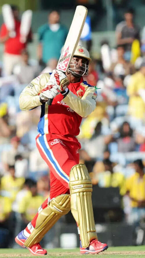 <p>Saurabh Tiwary and Chris Gayle amassed 31 runs off Rahul Sharma on April 17, 2012, with Gayle scoring 30 and Tiwary 1 run for RCB against PWI at M.Chinnaswamy Stadium, Bengaluru.</p>Agencies7/10:Chris Gayle and Manoj Tiwary