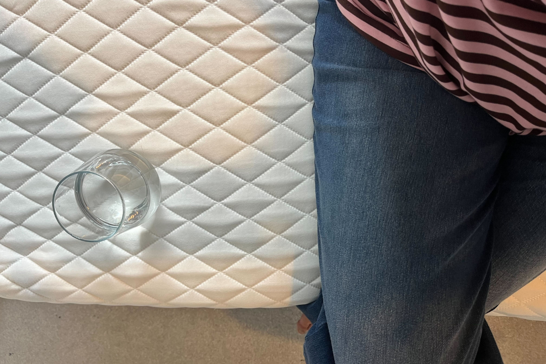 - Motion transfer: I monitored how much movement travelled across the mattress when sharing the bed with my husband and used a glass of water to test how much pressure it could handle.