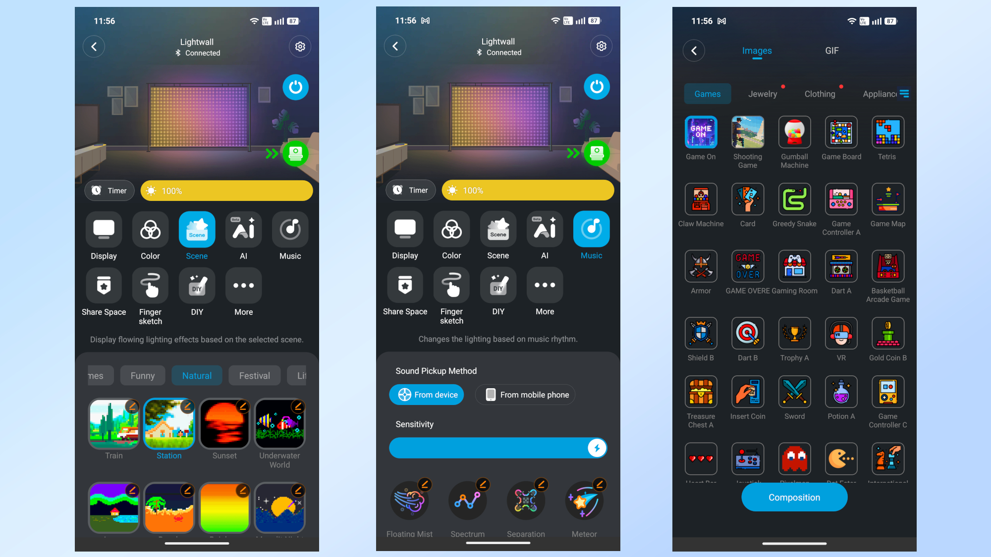 Just like many of the company’s other smart lights, the Lightwall can be controlled via Wi-Fi or Bluetooth. The latter is a great addition here; if you bring the Lightwall to a friend’s house or set it up at an event, you don’t have to worry about joining a local Wi-Fi network to have full control over its 1,536 LEDs.