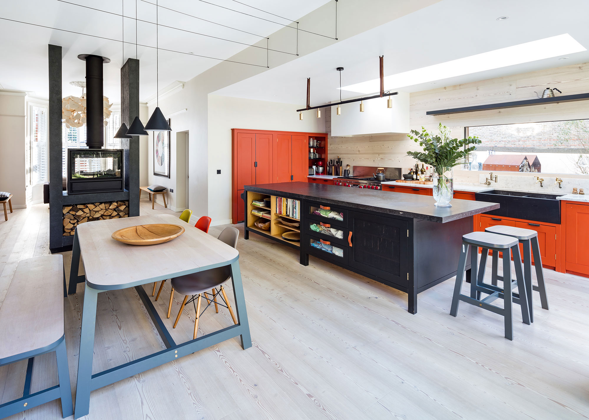 Looking at the house overall, it has to be the kitchen that needs addressing first, within the extension refresh and remodel we have planned. It isn't that it looks dated exactly, more just a little tired — scruffy even. And, at this time of year, when the sun has started to stream on in through the rooflights in the morning, certain areas of the space are really showing their age — the water-stained timber countertops, marked white walls, and, in particular, the discolored white composite sink.