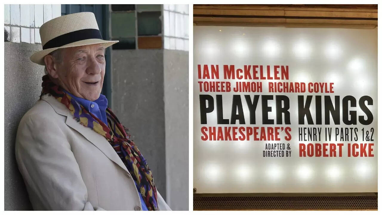 McKellen was playing John Falstaff in "Player Kings," a production of Henry IV, parts one and two, adapted and directed by Robert Icke, at the Noel Coward Theatre.