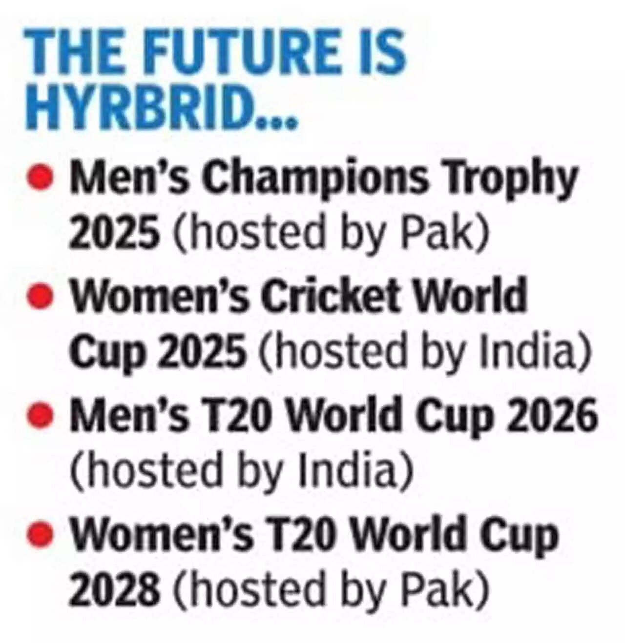 The matter dragged for months because Pakistan Cricket Board had objected to the hybrid model for the Champions Trophy. The process of reaching a solution gained speed after Jay Shah assumed office as ICC chairman on Dec 1. PCB had demanded that future ICC events hosted by India too should be played in a hybrid model. ICC put the subject up for vote with its board and a resolution was passed accordingly. TOI had reported on Dec 14 that PCB has been awarded an ICC event as compensation.