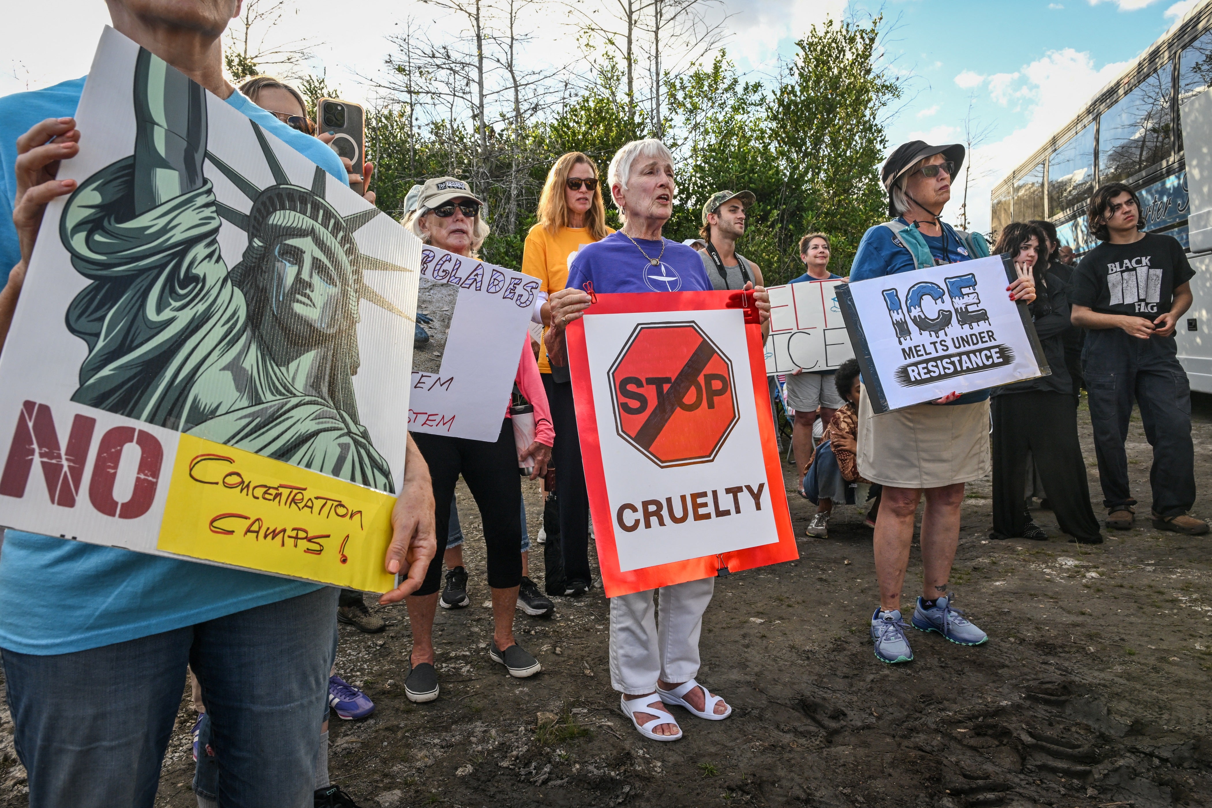 Protestors in Ochopee, Florida, holding anti-ICE signs (AFP via Getty Images)